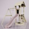 The playhouses smaller footprint also allows for a larger playing area on the playsets platform; which features a vertical climbing wall, 8ft slide, space underneath to turn into a sandpit if you wish and attached swing arm.
