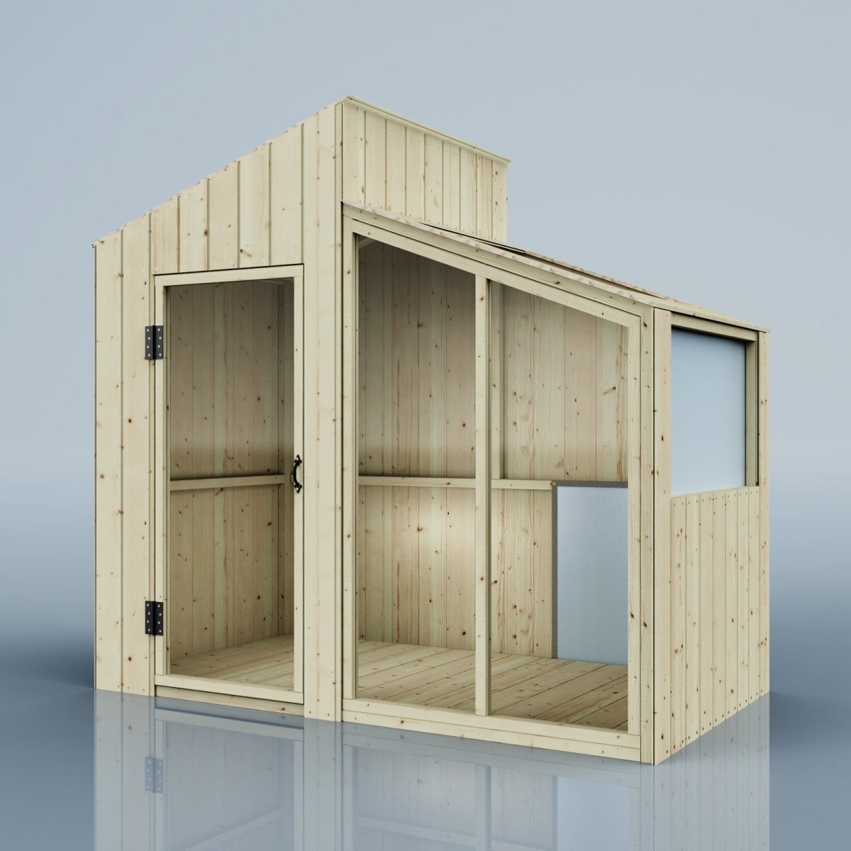 The PolarPlay Freyja Playhouse has a wall of floor to ceiling windows like the PolarPlay Asta but also comes with a slanted Perspex roof, perfect for sitting below and watching the clouds or the stars at night as well as letting in lots of natural light during the day and making the whole playhouse feel light and airy.