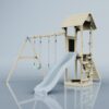 Supplied untreated the natural warmth of the wood is complimented by the muted colour palette of the accessories creating a climbing tower that can be personalised to go with any garden design.